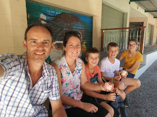 We headed first into Mareeba to empty the porta potti and refill our tummies at the local bakery! Jude and I (Greg) tried mushy peas on our pies, which seems to be a Qld tradition. It was OK, it added a bit of a vegetable-y flavour, but wasn't a strong or overpowering pea note.